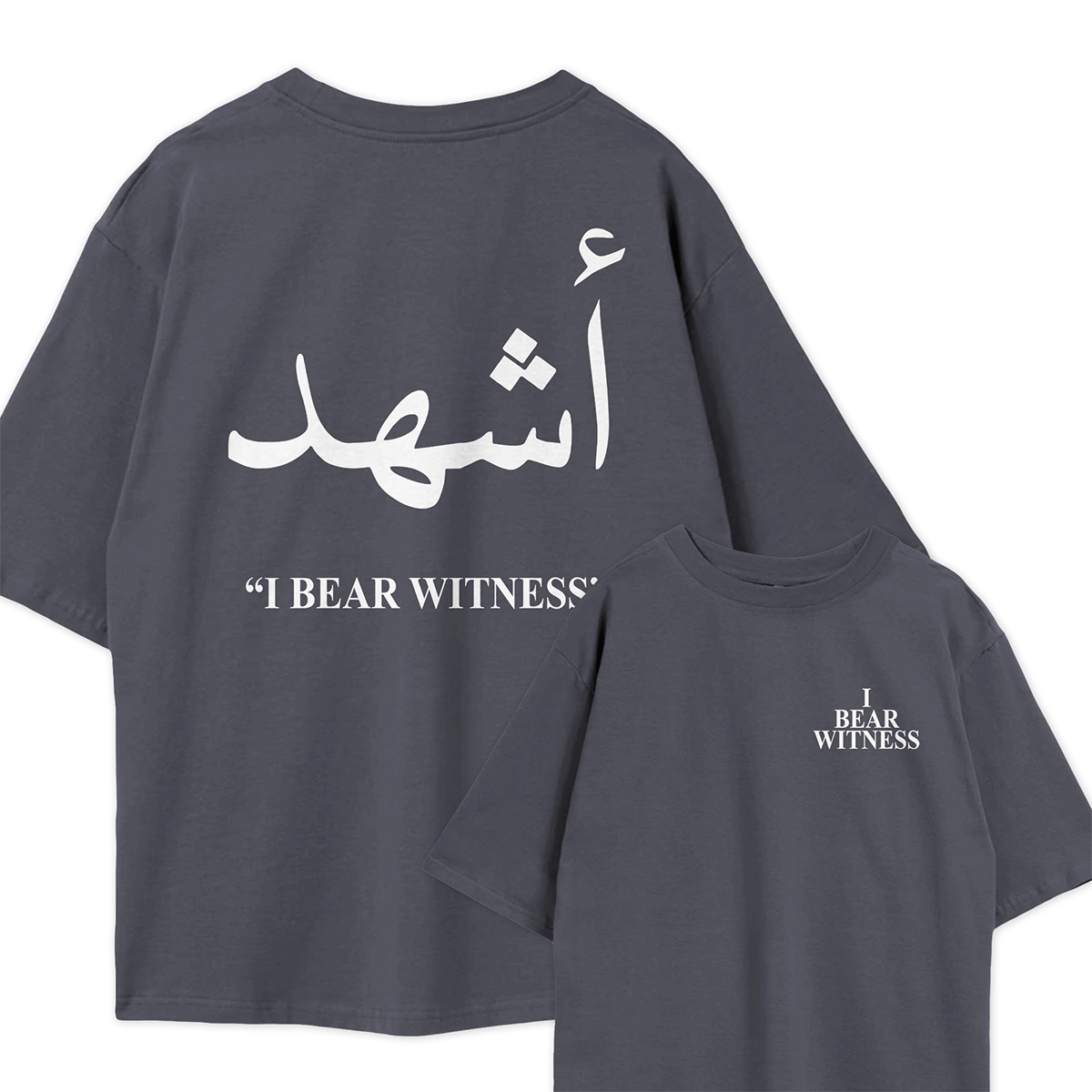 The “I Bear Witness” Oversized Drop Shoulder Shirt is a wearable declaration of that covenant. Cut in a generous oversized silhouette with a signature drop shoulder design, this shirt is as bold in its fit as it is in its message. It is for the believer who wears their faith without hesitation — who carries the Shahada not just in their heart, but in everything they do and everything they wear.