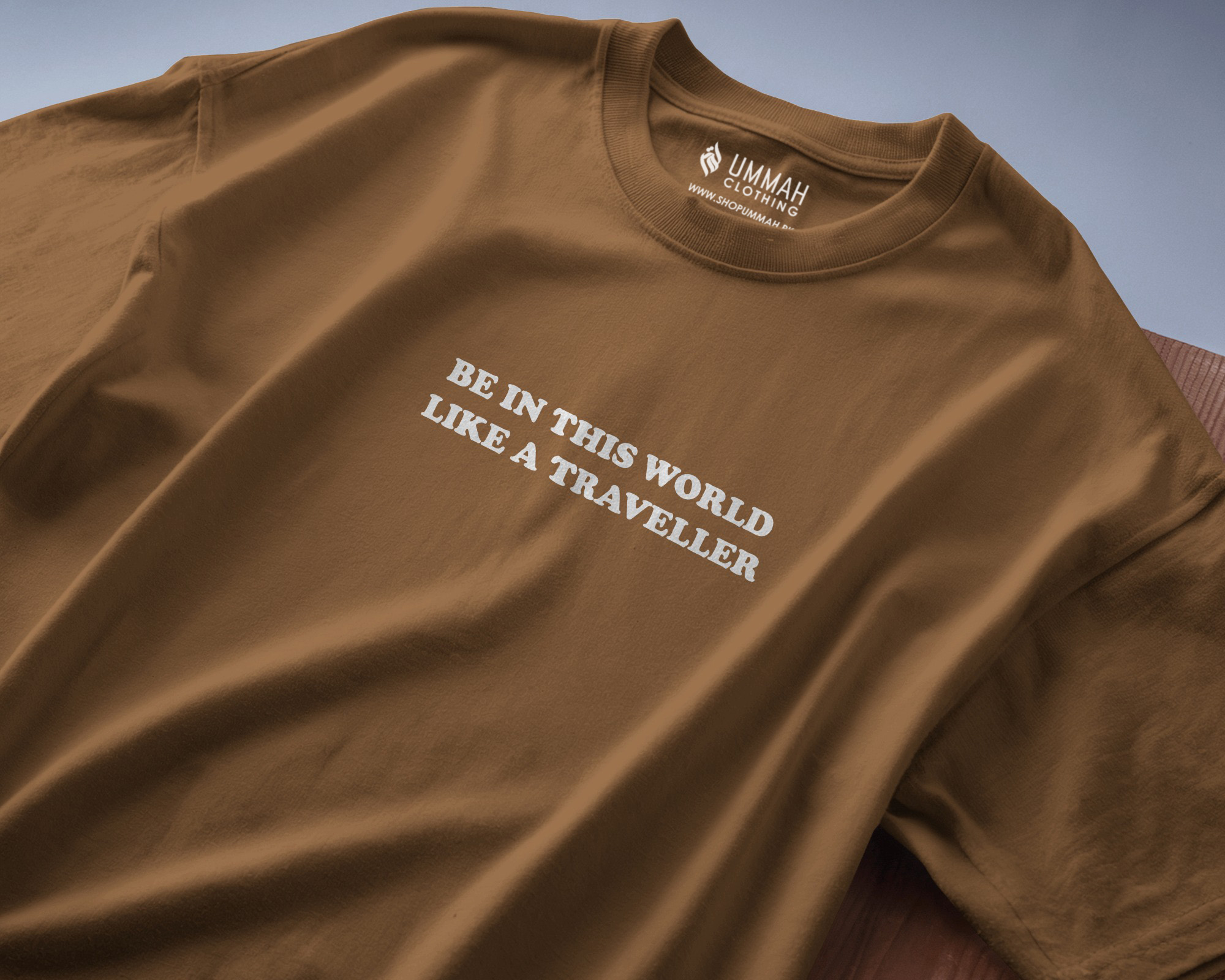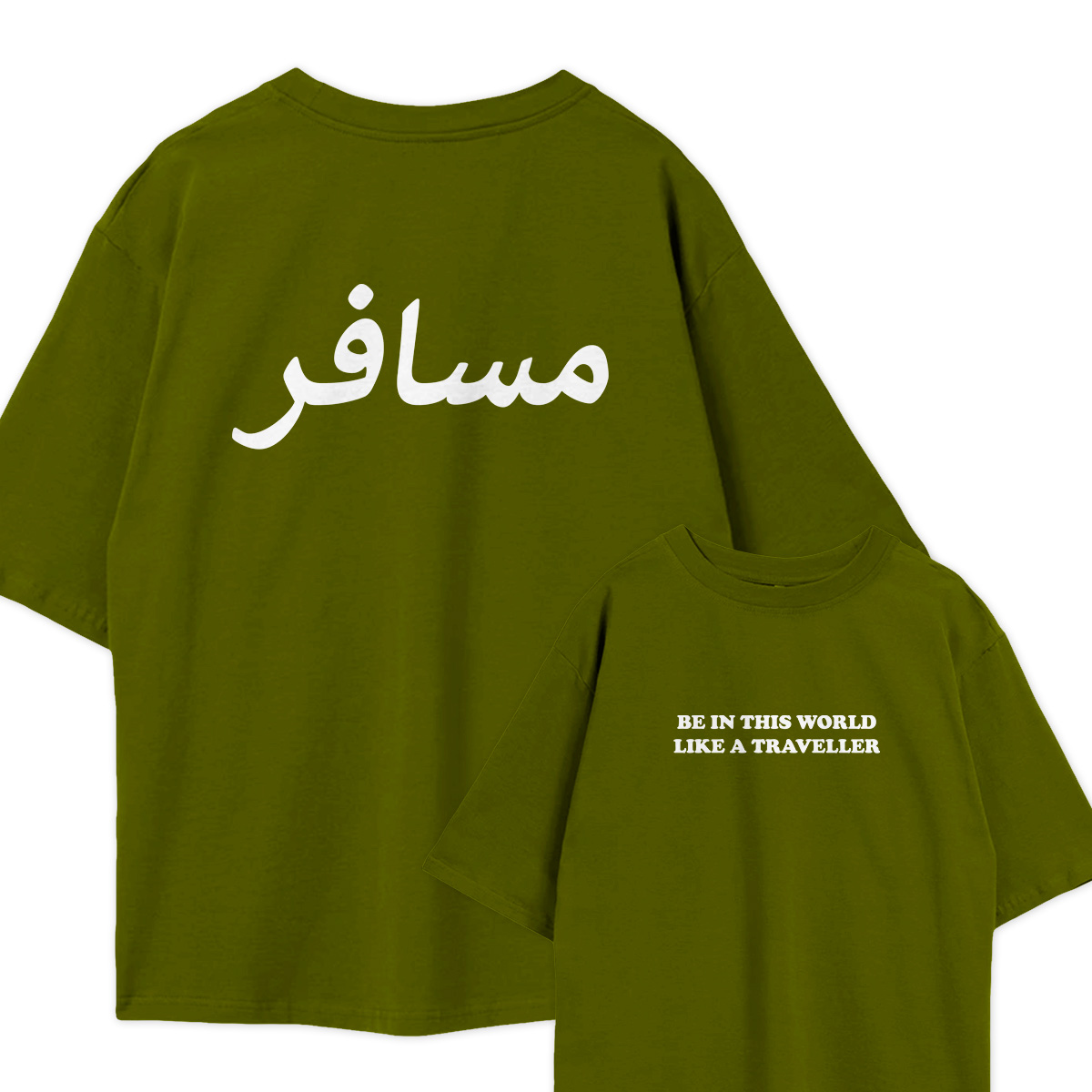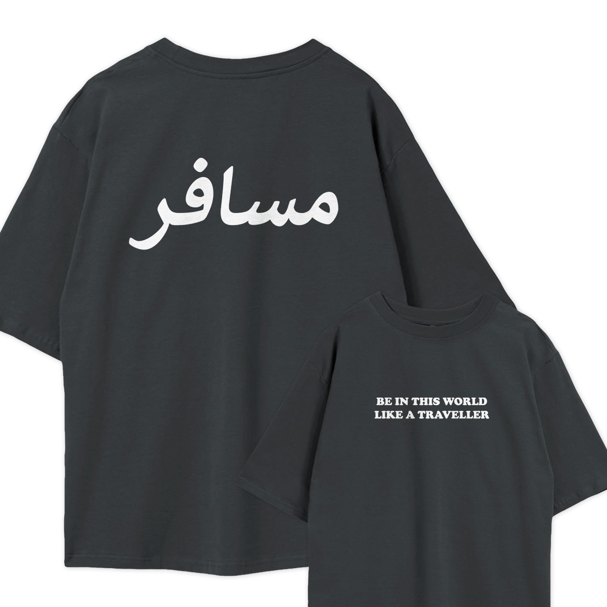 The Traveller Musafir Oversized Drop Shoulder Shirt carries that prophetic reminder on the chest. It is for the believer who has chosen to wear their worldview — who understands that the ache of this dunya, the losses, the longing, the feeling that nothing here quite satisfies, is not a flaw. It is by design. Because you were never meant to feel fully at home here. You are a Musafir. And Musafirs travel light — in their bags and in their hearts.